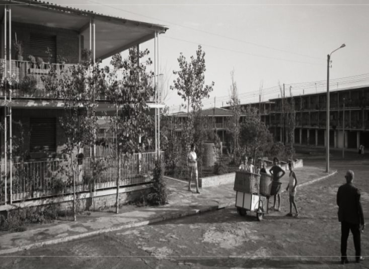 During these years, plans emerged to rebuild neighbourhoods destroyed during the war. At that time, the big cities were facing a real and very serious housing problem due to population growth and the exodus from rural areas. Some young architects, committed to finding solutions for this social situation, opened forums for debate on housing and the suitability of particular types and construction methods. Assemblies and competitions were held, where Modern propositions and reconstruction models deriving from the world wars resurfaced. The new social demands had to be met by making use of the technical advances of the time. The working-class neighbourhoods built on the outskirts of Madrid to solve the housing shortage, such as the planned or overspill towns, already show a full assimilation of these values.